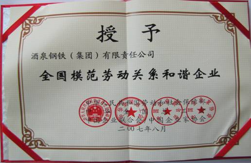 全國(guó)模范勞動(dòng)關(guān)系和諧企業(yè)